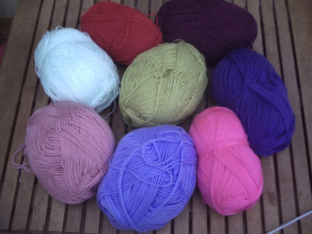 I have chosen to work with all these gorgeous colours, it's Robin DK, and I'm using a 5 mm crochet hook.